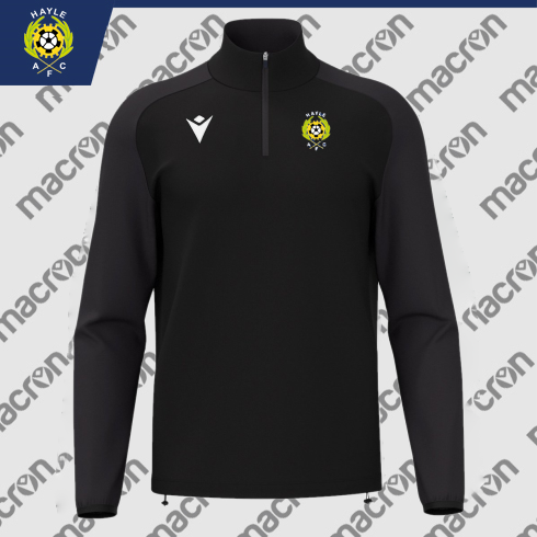 Hayle AFC Isen Top.  Black 1/4 zip top with embroidered badge and the option to add initials.